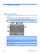1 Utilizar o Painel Táctil A ilustração e a tabela seguintes descrevem o Painel Táctil do computador. Componente Descrição (1) Painel Táctil* Move o ponteiro e selecciona ou activa itens no ecrã. (2) Botão esquerdo do painel táctil* Funciona como o botão esquerdo do rato externo. (3) Botão direito do Painel Táctil* Funciona como o botão direito do rato externo. (4) Zona de deslocamento do Painel Táctil Desloca-se para cima ou para baixo. *Esta tabela descreve as predefinições.