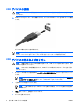 1394 デバイスの接続 注意: 1394 ポート コネクタの損傷を防ぐため、1394 デバイスの接続時に必要以上の力を加 えないでください。 ▲ 1394 デバイスをコンピュータに接続するには、デバイスの 1394 ケーブルを 1394 ポートに接続 します。 デバイスが検出されると音が鳴ります。 1394 デバイスの停止および取り外し 注意: 情報の消失やシステムの応答停止を防ぐため、1394 デバイスを取り外すときは、ま ずデバイスを停止してください。 注意: 1394 コネクタの損傷を防ぐため、1394 デバイスの取り外し時にケーブルを引っ張ら ないでください。 1. タスクバーの右端にある通知領域の[ハードウェアの安全な取り外し]アイコンをダブルクリック します。 注記: [ハードウェアの安全な取り外し]アイコンを表示するには、通知領域の[隠れてい るインジケータを表示します]アイコン(<または<<)をクリックします。 2. 一覧のデバイス名をクリックします。 注記: デバイスが表示されない場合は、取り外す前にデバイスを停止する必要はありま せん。 JAWW 3.