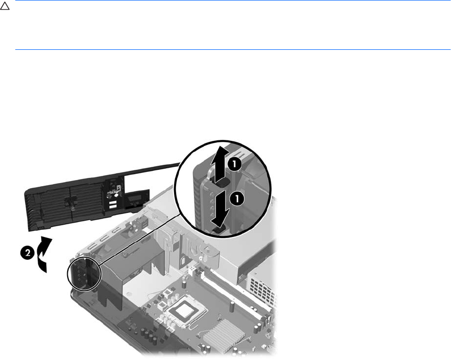 6. Til de groene vergrendeling op achter de rechterbovenzijde van het voorpaneel en duw de
