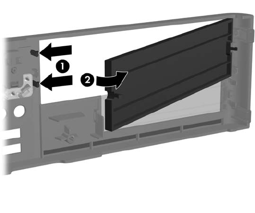 3. Verwijder het 5,25-inch afdekplaatje door de twee lipjes die het afdekplaatje op zijn plek houden