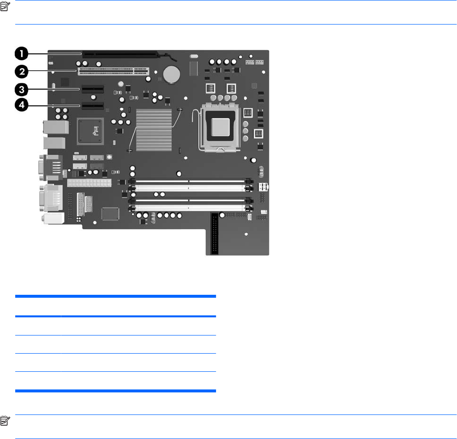 OPMERKING: In het PCI Express x16-uitbreidingsslot kan een PCI Express x1-, x4-, x8- of x16-