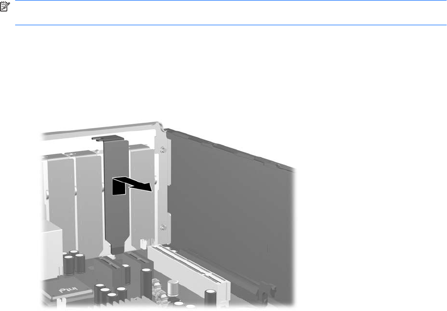 a. Als u een uitbreidingskaart in een leeg slot plaatst, verwijdert u op de achterkant van het