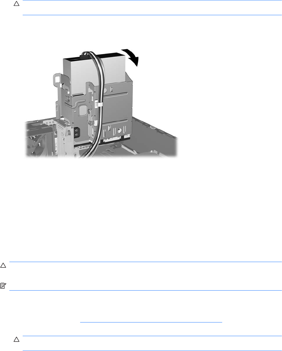 VOORZICHTIG: Let erop dat er geen kabels of snoeren bekneld raken wanneer u de schijfhouder