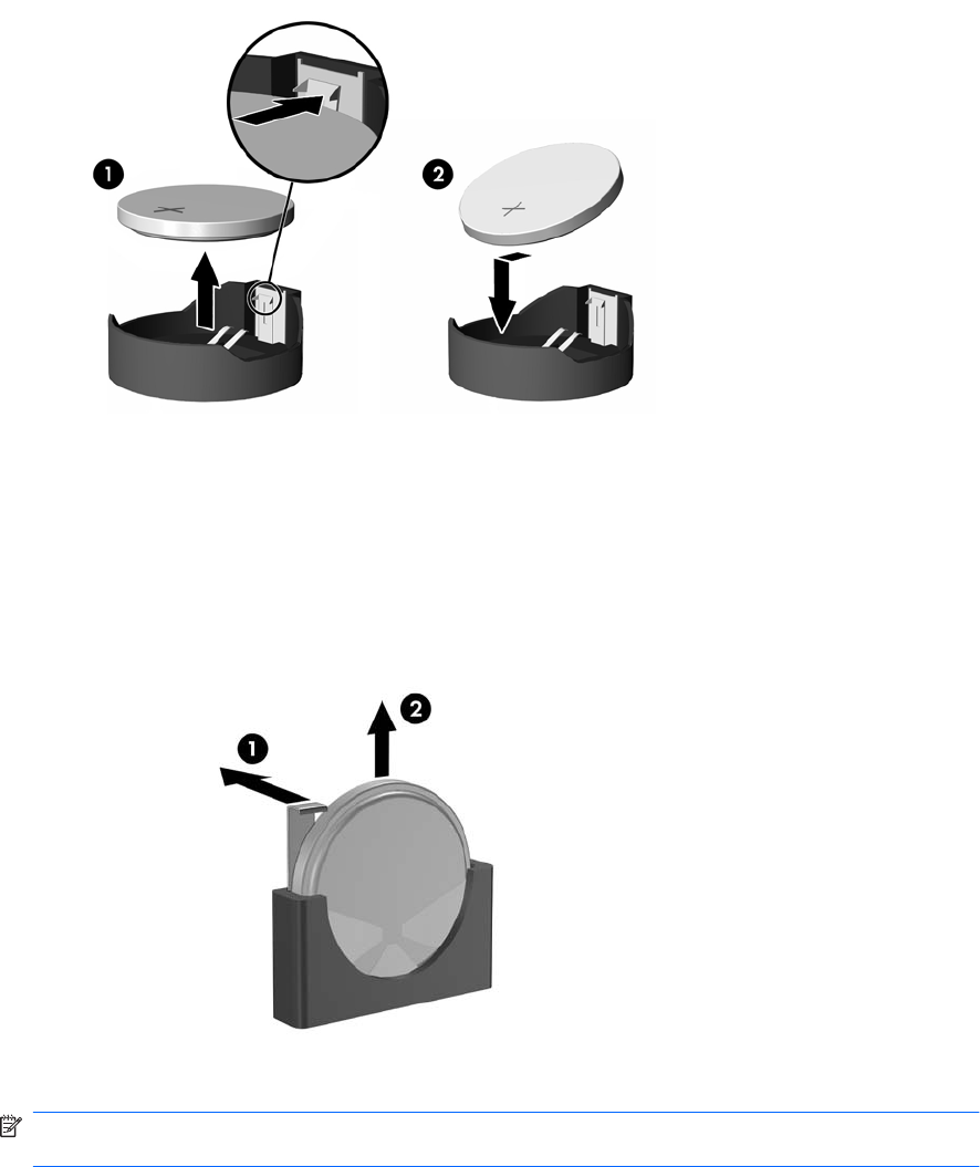 boven. Duw de andere kant van de batterij omlaag totdat de klem vastklikt (2).