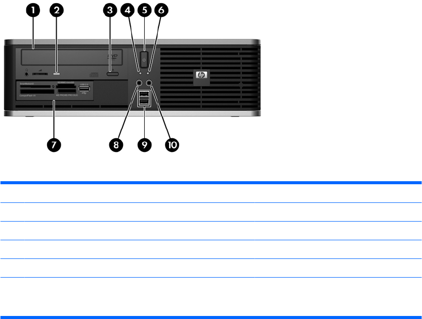 2 Lampje van de optische-schijfeenheid 7 Mediakaartlezer van 3,5 inch (optioneel)