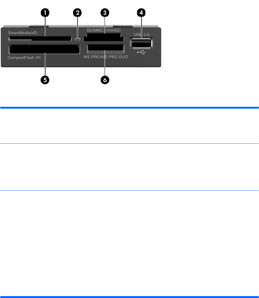 2 Activiteitslampje van de mediakaartlezer 5 CompactFlash I/II