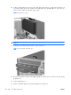 외부 드라이브 베이 하우징 및 전원 공급 장치를 위쪽으로 돌려 시스템 보드의 메모리 모듈 소켓