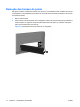 Insira os dois ganchos na parte esquerda do painel, dentro dos orifícios retangulares no chassi (1)