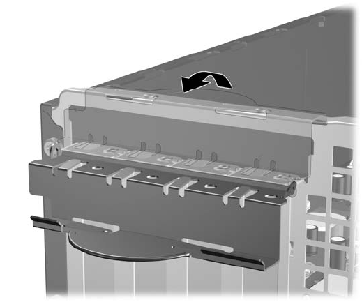 8. Eliberaţi siguranţa care reţine capacul slotului şi care asigură capacele sloturilor PCI, ridicând