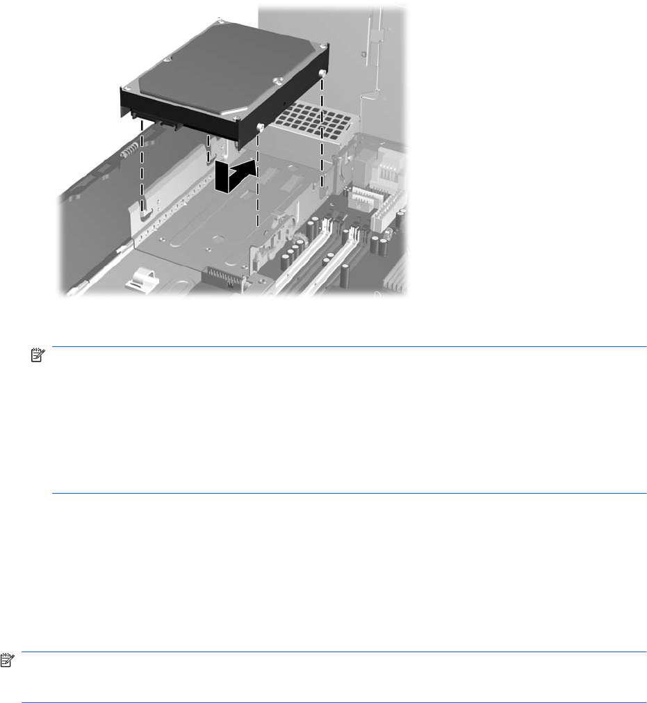 NOTĂ: Când înlocuiţi unitatea de disc principală, asiguraţi-vă că poziţionaţi traseul cablurilor