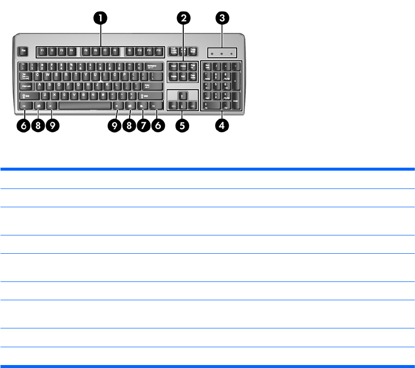 ตาราง 1-4 สวนประกอบของแปนพิมพ