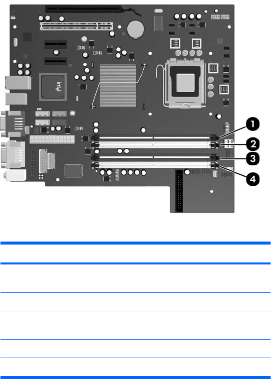 Terdapat empat soket DIMM pada papan sistem, dengan dua soket per saluran. Soket tersebut berlabel