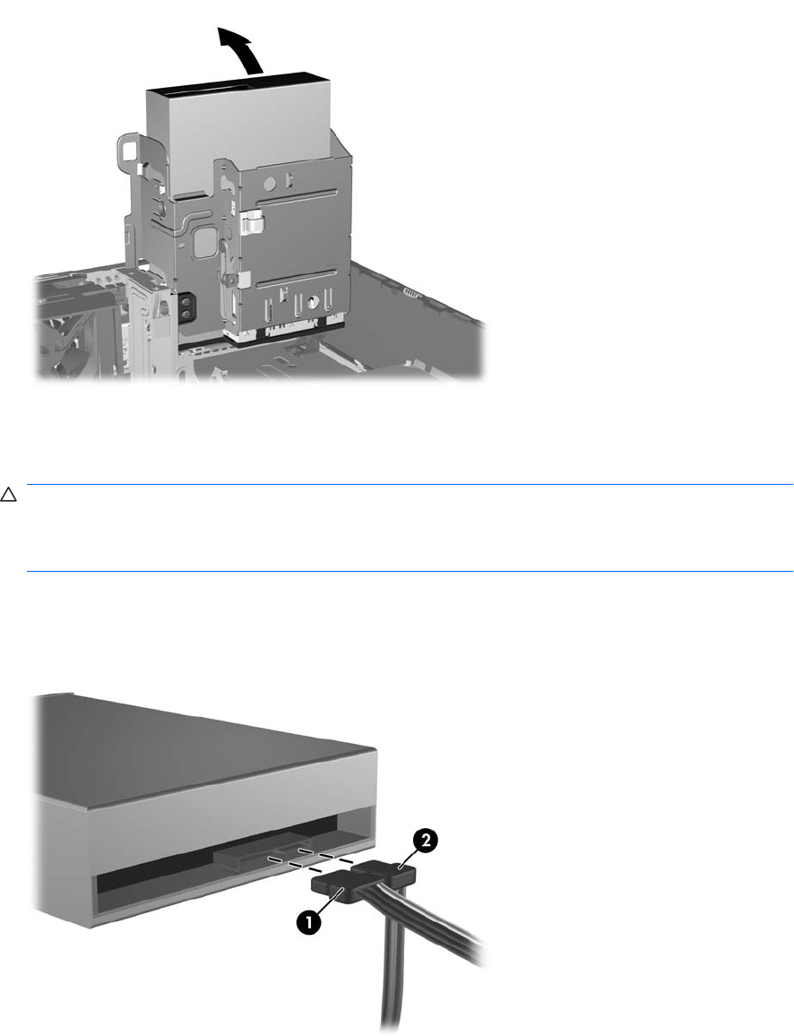 13. Sambungkan kabel daya (1) dan kabel data (2) ke bagian belakang drive optik.