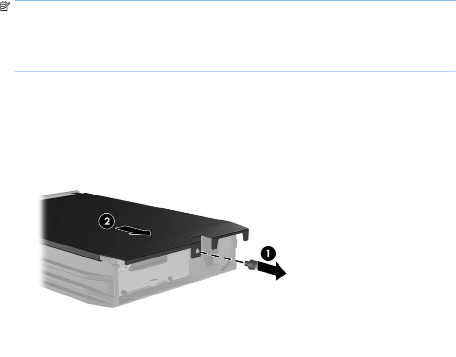 2. Lepaskan sekrup dari bagian belakang wadah (1), lalu geser penutup bagian atas wadah (2).
