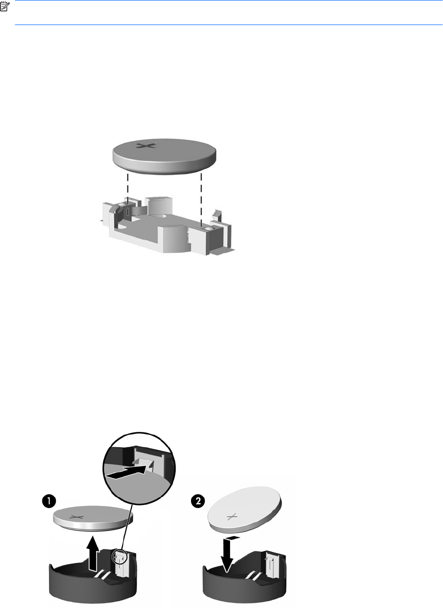 b. Geser baterai pengganti ke posisinya, dengan sisi positif di atas. Slot baterai secara otomatis