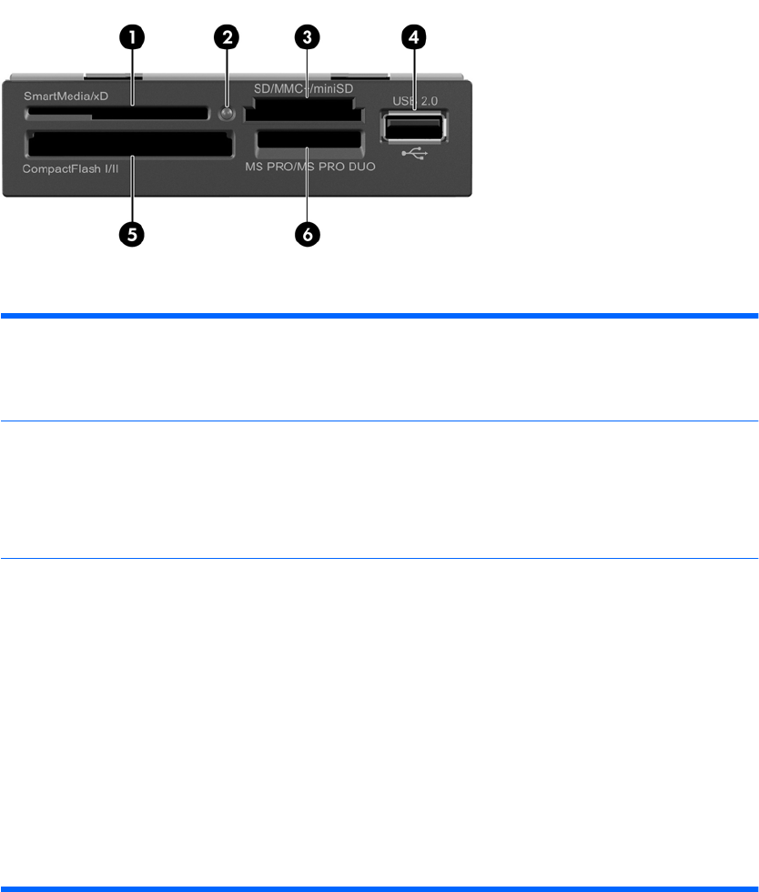 gambar dan tabel berikut untuk mengenali komponen pembaca kartu media.