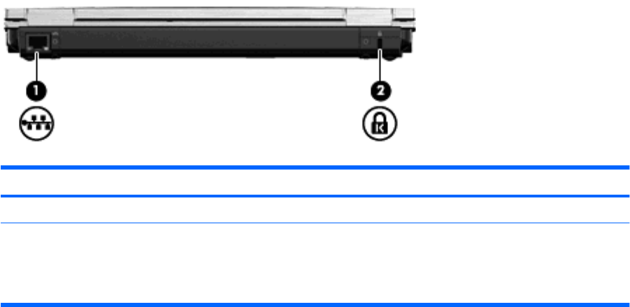 (1) RJ 45-jack (nätverk) Ansluter en nätverkskabel.