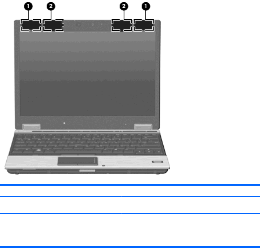 (1) WLAN-antenn (2)* Skickar och tar emot trådlösa signaler över lokala trådlösa nätverk