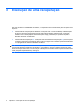 3 Execução de uma recuperação Em caso de falha ou instabilidade do sistema, o computador fornece ferramentas para recuperar seus arquivos: ● Ferramentas de recuperação do Windows: Você pode usar o Centro de Backup e Restauração de forma a recuperar informações para as quais efetuou backup anteriormente. Você pode também usar o Startup Repair do Windows para corrigir problemas que poderíam impedir o Windows de iniciar corretamente.