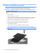 Inclusão ou substituição de um módulo de memória no slot do módulo de memória de expansão AVISO! Para reduzir o risco de choque elétrico e de danos ao equipamento, desconecte o cabo de alimentação e remova todas as baterias antes de instalar o módulo de memória. CUIDADO: A descarga eletrostática (ESD) pode danificar os componentes eletrônicos. Antes de iniciar qualquer procedimento, toque em um objeto de metal aterrado para certificar-se de estar descarregado de eletricidade estática.