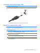 Connexion d'un périphérique USB ATTENTION : Pour éviter d'endommager un connecteur USB, ne forcez pas lors du branchement d'un périphérique USB. ▲ Pour connecter un périphérique USB à l'ordinateur, branchez son câble USB sur le port USB. Vous entendrez alors un son indiquant que le périphérique a été détecté. REMARQUE : La première fois que vous connectez un périphérique USB, un message s’affiche dans la zone de notification pour vous indiquer que l'ordinateur reconnaît le périphérique.