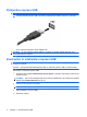 Priključitev naprave USB POZOR: Da ne pride do poškodbe priključka USB, pri priključevanju naprave USB ne uporabljajte sile. ▲ Če želite priključiti napravo USB v računalnik, priključite kabel USB za napravo v vrata USB. Ko bo naprava prepoznana, boste zaslišali zvok. OPOMBA: Pri prvi priključitvi naprave USB se v področju za obvestila prikaže sporočilo, da je računalnik prepoznal napravo.