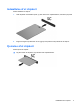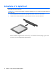 Indsættelse af et chipkort Sådan indsættes et chipkort: 1. Hold chipkortet med etiketten opad, og skub kortet ind i chipkortlæseren, indtil det er på plads. 2. Følg anvisningerne på skærmen for at logge på computeren med pinkoden til dit chipkort. Fjernelse af et chipkort Sådan fjernes et chipkort: ▲ Tag fat i kanten af chipkortet, og træk det ud af chipkortlæseren.