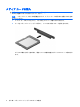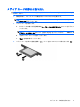 メディア カードの挿入 注意: コンピュータおよびメディア カードの損傷を防ぐため、メディア カード スロットには、ど のような種類のアダプタも挿入しないでください。 注意: メディア カード コネクタの損傷を防ぐため、メディア カードの挿入時に必要以上の力を加 えないでください。 1. メディア カードのラベルを上にし、コネクタをコンピュータ側に向けて持ちます。 2.