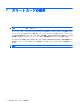 メディア カードの停止と取り出し 注意: データの消失やシステムの応答停止を防ぐため、メディア カードを取り出す前にカードを停 止してください。 1. 情報を保存し、メディア カードに関連するすべてのプログラムを閉じます。 注記: データ転送を停止するには、オペレーティング システムの[コピーしています]ウィンド ウで[キャンセル]をクリックします。 2. メディア カードを停止します。 a. タスクバーの右端にある通知領域の[ハードウェアの安全な取り外し]アイコンをダブルク リックします。 注記: [ハードウェアの安全な取り外し]アイコンを表示するには、通知領域の[隠れている インジケータを表示します]アイコン([<]または[<<])をクリックします。 3. b. 一覧からメディア カード名をクリックします。 c.