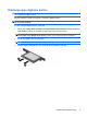 Vstavljanje digitalne kartice POZOR: Da preprečite poškodbe računalnika in digitalne kartice, ne vstavljajte v čitalnik pomnilniških kartic nikakršnih prilagojevalnikov. POZOR: Da ne pride do poškodbe priključkov digitalne kartice, pri vstavljanju slednje ne uporabljajte sile. 1. Digitalno kartico držite tako, da bo nalepka obrnjena navzgor, priključek pa proti računalniku. 2. Vstavite kartico v čitalnik pomnilniških kartic, nato pa jo potisnite tako, da se trdno zaskoči.