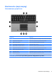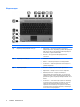 Компонент Описание (4) ● Бирюзовый — обращение к внутреннему жесткому диску или оптическому дисководу. ● Желтый — программа HP 3D DriveGuard временно «запарковала» внутренний жесткий диск. Индикатор диска (5) Индикатор Caps lock Светится — включен верхний регистр. (6) Индикатор Num lock Светится — включен режим num lock или задействована встроенная цифровая панель клавиатуры. (7) Индикатор отключения звука ● Бирюзовый — звук компьютера включен. ● Желтый — звук компьютера отключен.