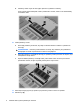 Pridanie alebo výmena pamäťového modulu v rozširujúcej zásuvke pre pamäťový modul VAROVANIE! Pred inštaláciou pamäťového modulu vytiahnite napájací kábel a vyberte batérie, aby ste znížili riziko úrazu elektrickým prúdom a poškodenia zariadenia. UPOZORNENIE: Elektrostatický výboj môže poškodiť elektronické súčasti. Pred vykonaním akéhokoľvek úkonu sa dotknite uzemneného kovového predmetu, aby ste vybili statickú elektrinu.