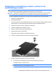 Dodajanje ali zamenjava pomnilniškega modula v reži modula za razširitev pomnilnika OPOZORILO! Da zmanjšate možnost električnega udara ali poškodbe opreme, pred nameščanjem pomnilniškega modula izključite napajalni kabel in odstranite vse akumulatorje. POZOR: Elektrostatična razelektritev lahko poškoduje elektronske komponente. Preden začnete kateri koli postopek, se razelektrite, tako da se dotaknete ozemljenega kovinskega predmeta.