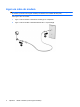 Ligar um cabo do modem AVISO! Para reduzir o risco de choque eléctrico, incêndio ou danos ao equipamento, não ligue cabos de modem (incluído só em alguns modelos) ou telefónicos a tomadas RJ-45 (rede). Para ligar o cabo do modem: 2 1. Ligue o cabo do modem à tomada do modem (1) no computador. 2. Ligue o cabo do modem à tomada telefónica RJ-11 na parede (2).