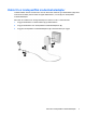 Koble til en modemkabel ADVARSEL: Hvis du plugger en modemkabel (følger bare med enkelte modeller) eller telefonkabel i RJ-45-nettverkskontakten, kan det føre til elektrisk støt, brann eller skade på utstyret. Slik kobler du til modemkabelen: 2 1. Plugg modemkabelen i modemkontakten (1) på datamaskinen. 2. Plugg modemkabelen i RJ-11-telefonkontakten (2).