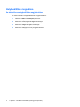 Modemkábel csatlakoztatása FIGYELEM! Az áramütés, a tűz és a meghibásodás veszélyének elkerülése érdekében ne csatlakoztassa a (csak egyes típusokhoz mellékelt) modem- vagy a telefonkábelt az RJ-45 típusú (adathálózati) csatlakozóhoz. A modemkábel csatlakoztatása: 2 1. Csatlakoztassa a modemkábelt a számítógépen lévő modemcsatlakozóhoz (1). 2. Csatlakoztassa a modemkábel másik végét egy RJ-11 típusú fali telefonaljzatba (2). 1.