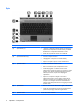 Spie Componente Descrizione (1) ● "Tirchese: un dispositivo wireless integrato, ad esempio un dispositivo WLAN (wireless local area network), HP Mobile Broadband e/o un dispositivo Bluetooth®, è acceso. ● Gialla: tutte le periferiche wireless sono disattivate. ● Accesa: il computer è acceso. ● Lampeggiante: il computer è in modalità Standby. ● Spenta: il computer è spento o in stato di ibernazione. ● Ambra: una batteria è in fase di carica.