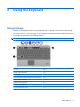 5 Using the keypads The computer has an embedded numeric keypad and also supports an optional external numeric keypad or an optional external keyboard that includes a numeric keypad. NOTE: Your computer may look slightly different from the illustration in this section. Component Description (1) fn key Executes frequently used system functions when pressed in combination with a function key or the esc key. (2) Embedded numeric keypad Can be used like the keys on an external numeric keypad.