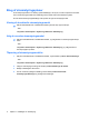 Batteribesparelse 20 ● Vælg strømstyringsplanen Strømbesparelse via Strømstyring under System og sikkerhed i Windows Kontrolpanel. ● Afbryd alle forbindelser til trådløse enheder og til lokale netværk, og afslut modemprogrammer, når de ikke anvendes. ● Afbryd eksterne enheder, som ikke er tilsluttet en ekstern strømkilde, når du ikke anvender dem. ● Afbryd, deaktivér eller fjern eventuelle eksterne mediekort, du ikke bruger.