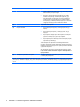 Element Opis poziom naładowania baterii osiąga krytycznie niski poziom, wskaźnik zaczyna szybko migać. ● Nie świeci: Jeżeli komputer jest podłączony do źródła zasilania zewnętrznego, wskaźnik jest wyłączany, gdy wszystkie baterie w komputerze są w pełni naładowane. Jeżeli komputer nie jest podłączony do źródła zasilania zewnętrznego, wskaźnik pozostaje wyłączony do momentu osiągnięcia niskiego poziomu naładowania baterii.