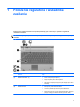1 Położenie regulatora i wskaźnika zasilania Ilustracja oraz tabela zamieszczone poniżej zawierają opis i informacje o położeniu regulatora i wskaźnika zasilania. UWAGA: Używany komputer może się trochę różnić od komputera pokazanego na ilustracji w tym rozdziale. (1) (2) Element Opis Wskaźniki zasilania* (2) ● Świeci: Komputer jest włączony. ● Miga: Komputer jest w stanie uśpienia. ● Nie świeci: komputer jest wyłączony lub znajduje się w stanie hibernacji.