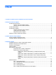 Obsah 1 Umístění ovládacích prvků a indikátorů pro funkce napájení 2 Nastavení možností napájení Použití úsporných režimů ..................................................................................................................... 3 Aktivace a ukončení režimu spánku .................................................................................... 3 Aktivace a ukončení režimu hibernace ................................................................................ 4 Použití měřiče baterie .....