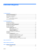 Indholdsfortegnelse 1 Produktegenskaber Standardkonfigurationsegenskaber ...................................................................................................... 1 Komponenter på frontpanelet ............................................................................................................... 2 Komponenter i mediekortlæseren ........................................................................................................ 3 Komponenter på bagpanel .............................