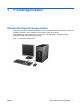 1 Produktegenskaber Standardkonfigurationsegenskaber Egenskaberne for HP Compaq Microtower kan variere, afhængigt af modellen. En komplet oversigt over hardware og software, der er installeret på computeren, finder du ved at køre diagnosticeringsprogrammet (leveres kun med nogle computermodeller). Vejledning i brug af programmet finder du i Vejledning til fejlfinding.