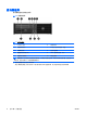 介质卡阅读器组件 介质卡阅读器是仅在某些机型上提供的可选设备。请参阅以下图解和表格来识别介质卡阅读器组件。 图 1-3 介质卡阅读器组件 表 1-2 介质卡阅读器组件 1 2 3 ZHCN SM/xD ● 3.3 伏 SM 卡 ● xD 卡 介质卡阅读器活动指示灯 SD/MMC+/miniSD 4 USB(通用串行总线)端口 5 CF I/II 型 6 ● I 型 CF 卡 ● II 型 CF 卡 ● MicroDrive MS PRO/MS PRO DUO ● SD 卡 ● 记忆棒 (MS) ● MSD 卡 ● MagicGate 记忆棒 (MG) ● MMC 卡 ● MagicGate Memory Duo 记忆棒 ● 小型 MMC 卡 (RS MMC) ● Memory Stick Select 记忆棒 ● MMC 4.0 卡 (Mobile Plus) ● Memory Stick Duo 记忆棒 (MS Duo) ● 小型 MMC 4.