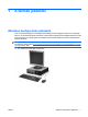A kis helyigényű számítógép használata torony elrendezésben A kis helyigényű számítógép torony elrendezésben is használható. Az előlap HP emblémával ellátott lapja asztali és tornyos elrendezéshez is hozzáigazítható. 1. Távolítsa el, vagy iktassa ki az összes biztonsági eszközt, amely a számítógép felnyitását akadályozza. 2. Vegye ki a számítógépből a cserélhető adathordozókat, például a hajlékonylemezeket vagy CDket. 3.
