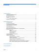 Innhold 1 Produktegenskaper Standard konfigurasjonsfunksjoner ...................................................................................................... 1 Frontpanelkomponenter ....................................................................................................................... 2 Minnekortleserkomponenter ................................................................................................................. 3 Komponenter på bakpanelet ................................