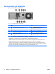 Komponenter till mediekortläsaren Mediekortläsaren är en tillvalsenhet som bara finns tillgänglig för vissa modeller. Identifiera mediekortkomponenter med hjälp av följande illustration och tabell. Bild 1-3 Komponenter till mediekortläsaren Tabell 1-2 Komponenter till mediekortläsaren 1 2 3 SVWW SmartMedia/xD ● 3.