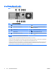 สวนประกอบทีแ ่ ผงดานหลัง ภาพ 1-4 สวนประกอบที่แผงดานหลัง ตาราง 1-3 สวนประกอบทีแ ่ ผงดานหลัง 1 ชองเสียบเน็ตเวิรก RJ-45 6 ชองเสียบ USB 2 ชองเสียบจอภาพ VGA (สีน้ําเงิน) 7 ชองเสียบจอภาพ Digital Video Interface (DVI-D) (สีขาว) 3 ชองเสียบอนุกรม 8 ชองเสียบเมาส PS/2 (เขียว) 4 ชองเสียบสายไฟ 9 ชองเสียบแปนพิมพ PS/2 (มวง) 5 ชองเสียบสัญญาณเสียงเขา (น้ําเงิน) 10 ชองเสียบสัญญาณออกสําหรับอุปกรณเสียงทีใ่ ช ไฟ (เขียว) หมายเหตุ: ตําแหนงและจํานวนของชองเสียบอาจตางกันไปในแตละรุน