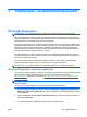 Taulukko 2-12 Levykeongelmien ratkaiseminen (jatkoa) Verkko-ohjain lakkasi toimimasta, kun tietokoneeseen liitettiin laajennuskortti Syy Ratkaisu Verkko-ohjain tarvitsee laiteohjaimia. Varmista, ettei ajureita poistettu vahingossa uuden laajennuskortin asennuksen yhteydessä. Asennettu laajennuskortti on verkkokortti (NIC), joka on ristiriidassa alkuperäisen NIC-kortin kanssa. Muuta kortin resurssiasetuksia tietokoneasetusten lisätoimintojen valikossa.